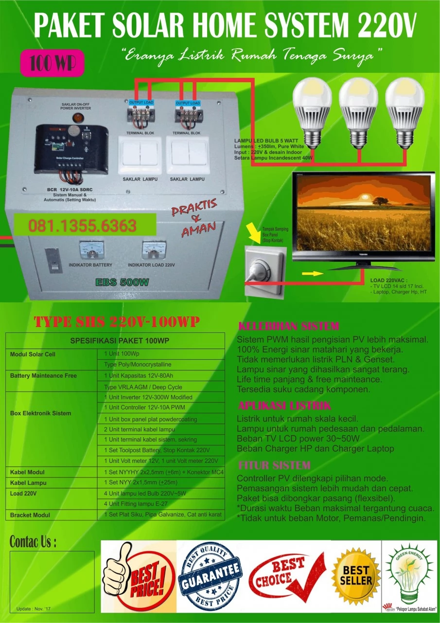 Shs Rumah 100wptipe 220v Menyediakan berbagai macam Lampu Penerangan Jalan Umum (PJU) Tenaga Surya atau Solar Cell dengan menyerap sinar matahari dijadikan arus listrik sebagai sumber listrik sehingga tanpa lagi menggunakan jaringan listrik PLN. Paket Lampu PJU Tenaga Surya Tipe Two In One dan All In One ini sangat cocok digunakan untuk jalan umum mulai ketinggian 5 s/d 9m diarea jalan perkotaan, pedesaan, pedalaman, pertambangan, pelabuhan, bandara udara dan komplek perumahan. Tipe lampu ini sudah menggunakan Battery tipe Lithium sehingga memiliki umur battery panjang sampai dengan maksimal 4 tahunan. Tipe lampu juga sudah menggunakan LED sehingga umur LED lampu panjang dan awet sampai dengan 5 tahunan.